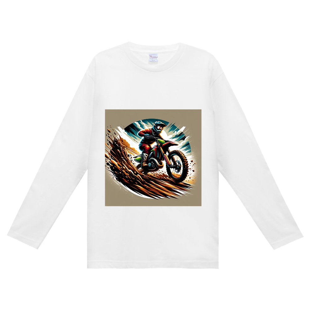 「疾風のモトクロスライダー」と題されたこのイラストは、泥まみれのトラックを疾走するモトクロスバイクの迫力満点のシーンを描いています。エネルギーとスピード感に溢れ、まさにモトクロスの醍醐味を体現しています。激しいアクションとダイナミックな動きを感じさせる一枚です。