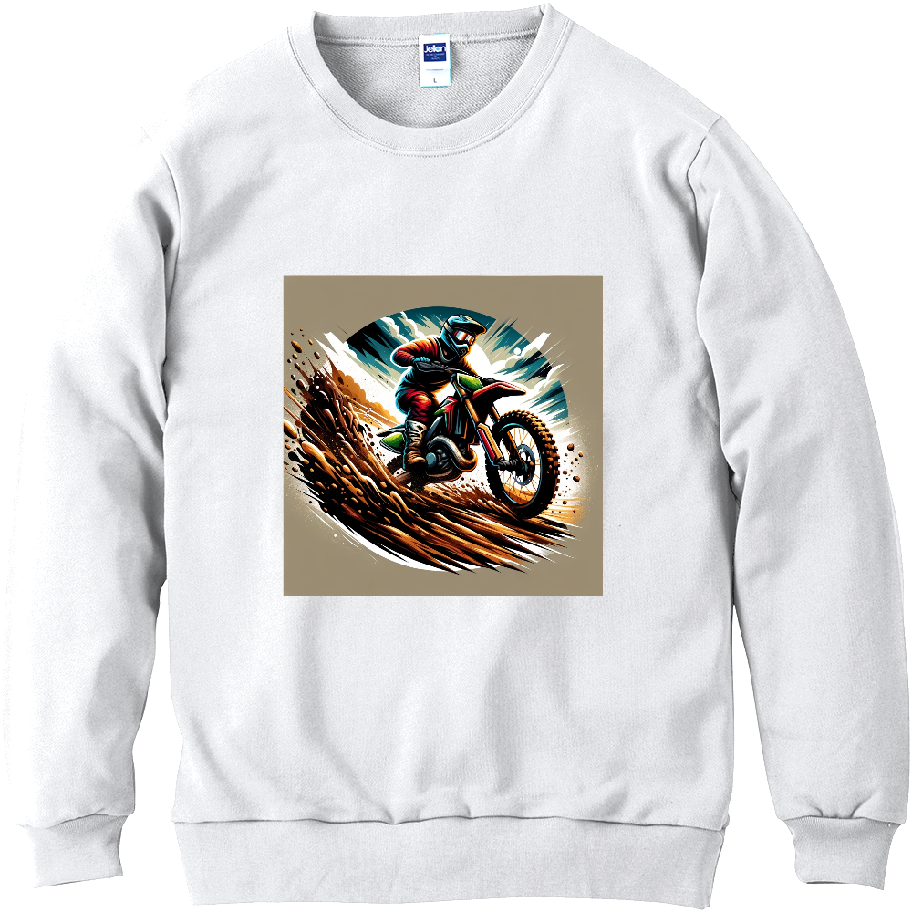 「疾風のモトクロスライダー」と題されたこのイラストは、泥まみれのトラックを疾走するモトクロスバイクの迫力満点のシーンを描いています。エネルギーとスピード感に溢れ、まさにモトクロスの醍醐味を体現しています。激しいアクションとダイナミックな動きを感じさせる一枚です。