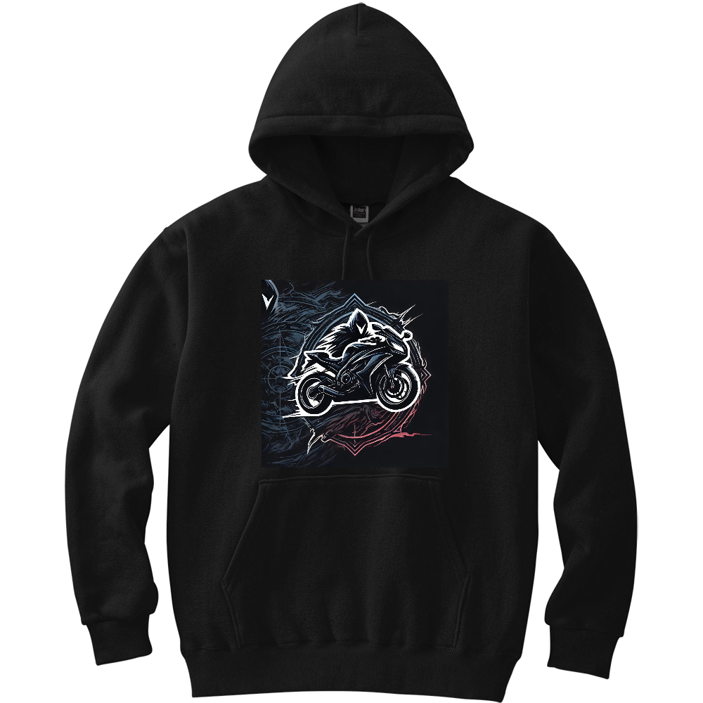 闇と冒険の世界を表現したこのロゴは、シャープなバイクのシルエットと詳細な地図が特徴です。影と謎の象徴であるフードを被った人物が、未知の世界への旅を示唆しています。深い青と赤の配色が、力強さと危険を強調し、見る者にインスピレーションを与えます。ダークでミステリアスな雰囲気を好む方に最適なデザインです。